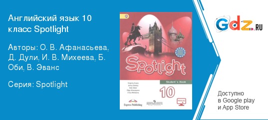 Желаем вам успехов в учебе с ГДЗ по английскому языку Spotlight для 10 класса (авторы: Афанасьева, Дули, Михеева, Оби, Эванс)