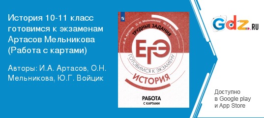 Работа с картами на уроках истории в 10–11 классах подразумевает использование исторических карт для формирования пространственных представлений учащихся. Это неотъемлемый элемент урока истории, который помогает обучающимся ориентироваться в пространстве исторической карты и «читать» её. ГДЗ по истории за 10-11 класс готовимся к экзаменам Артасова И.А., Мельниковой О.Н. готовимся к экзаменам. «Работа с картами» адресовано выпускникам 10–11 классов, которые хотят получить высокий балл на экзамене. Пособие полностью соответствует всем требованиям федерального государственного образовательного стандарта полного среднего образования.