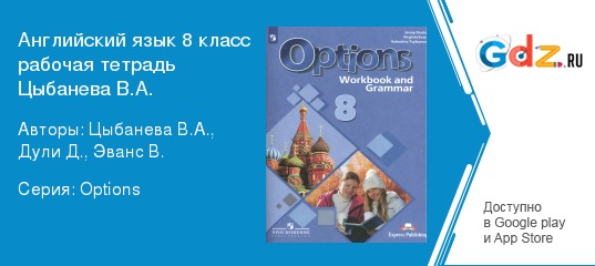 ГДЗ: готовые ответы по английскому языку Рабочая тетрадь с грамматическим тренажёром за 8 класс, решебник Цыбанева, Options онлайн решения на gdzx.ru.